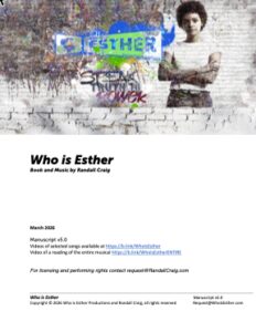 As a teenager, I self-taught myself piano by playing several hours every day. I never had the opportunity to study musical theater, and I’m not connected into the musical theater community, except from my seat in the audience. (I am a management consultant and Hall-of-Fame professional speaker.) So when I wrote Who is Esther, I was not following the “usual” routes of development as I didn’t know what they were. And as an outsider, there was no one I could turn to for mentorship. These are the unique beginnings of the play... and what distinguishes it from any other.